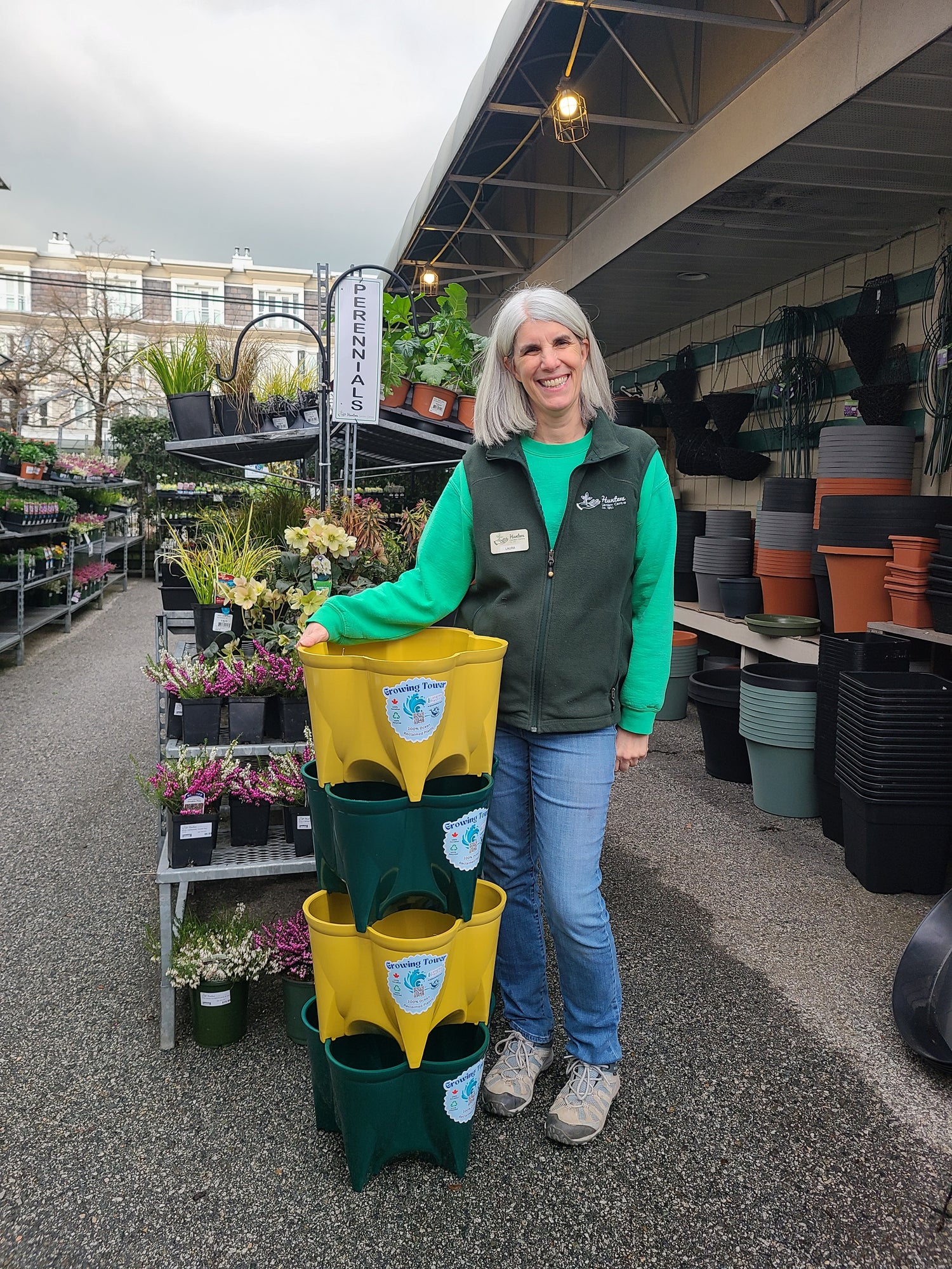 Get your growing tower in stores at Hunters Garden Centre off Broadway in Vancouver. So excited to be working with the team at Hunters to bring recycled plastic containers to our wonderful gardeners!